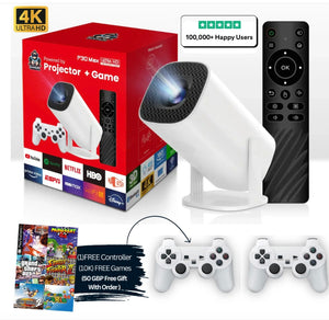 Upptäck framtidens nostalgi med Nostaluxor™ – den revolutionerande 2-i-1 mini-projektorn med inbyggda retrospel. Koppla in, luta dig tillbaka och spela klassiker direkt på väggen — eller kör filmkväll i 120” storbild. Vår nya kollektion kombinerar retrospel, hemmabio och modern design i ett enda paket som förvandlar varje rum till ett spelparadis.